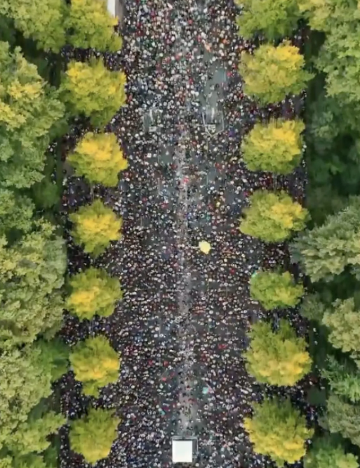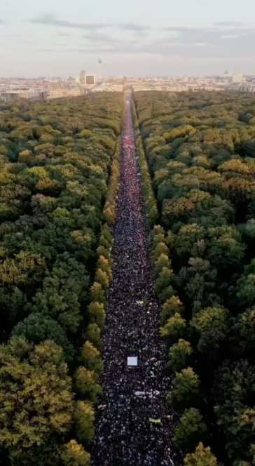 Eyalet Başbakanlığı önünde toplanan 100 binden fazla kişi, Federal Meclis önünden geçerek Berlin'in sembollerinden Grosser Stern Meydanı'na yürüdü.