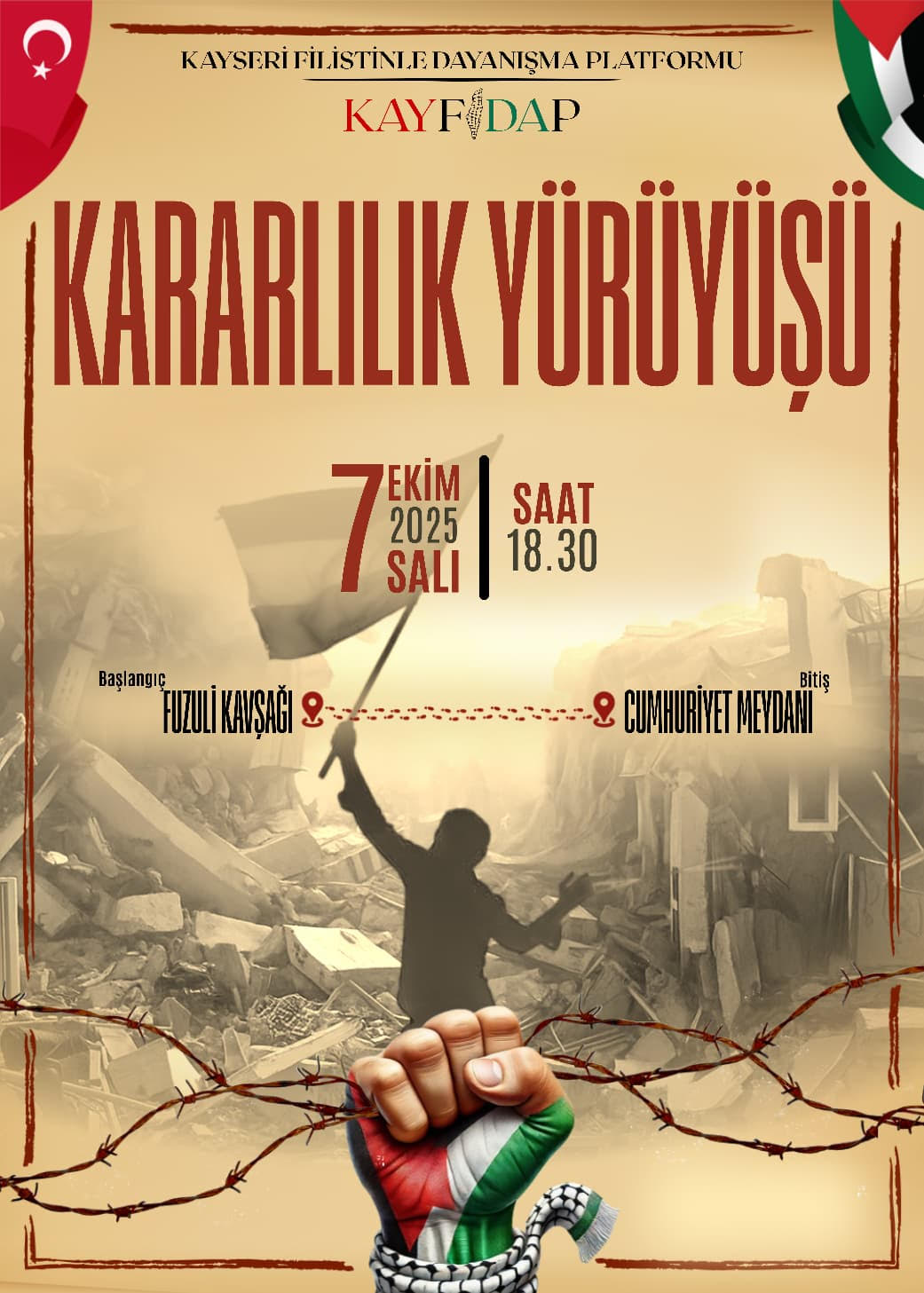 • 04Kayseri’de Filistin İçin "Kararlılık Yürüyüşü" Düzenleniyor