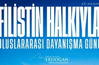 Cumhurbaşkanı Recep Tayyip Erdoğan, 29 Kasım Filistin Halkıyla Uluslararası Dayanışma Günü dolayısıyla yaptığı paylaşımda, İsrail saldırılarında hayatını kaybeden Filistinli tüm kahramanlara rahmet dileyerek Gazze halkına destek mesajı verdi.